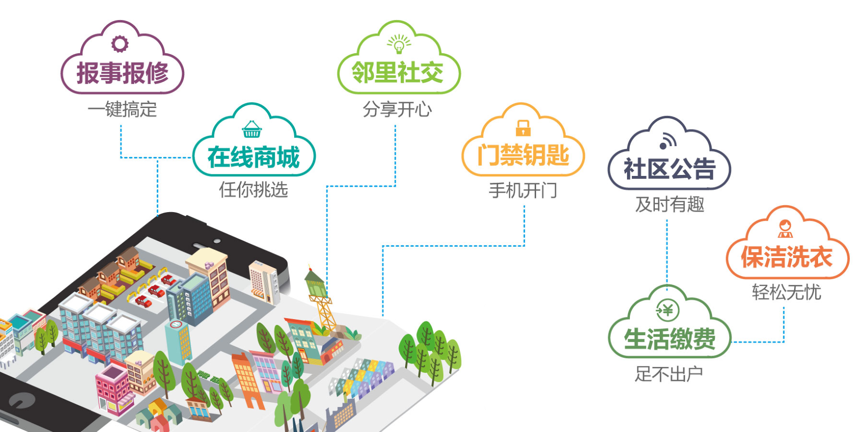 通過“平臺(tái)+硬件+運(yùn)營(yíng)”的軟硬件相結(jié)合理念,涵蓋到社區(qū)生活的方方面面,大到社區(qū)門禁、社區(qū)監(jiān)控、社區(qū)通訊等,小到家居設(shè)備、安全警報(bào)、居家醫(yī)療設(shè)備等,均可通過硬件設(shè)備將大數(shù)據(jù)收集傳輸備份至云端數(shù)據(jù)庫(kù),通過平臺(tái)整合分析可在線監(jiān)控社區(qū)安全、接受社區(qū)需求、提供社區(qū)服務(wù)等,有效提高工作效率和業(yè)主滿意度。