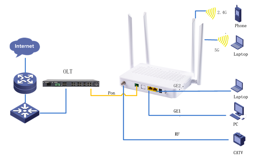 interface: 1* G/EPON+2*GE+2.4G/5.8G WLAN+1*RF